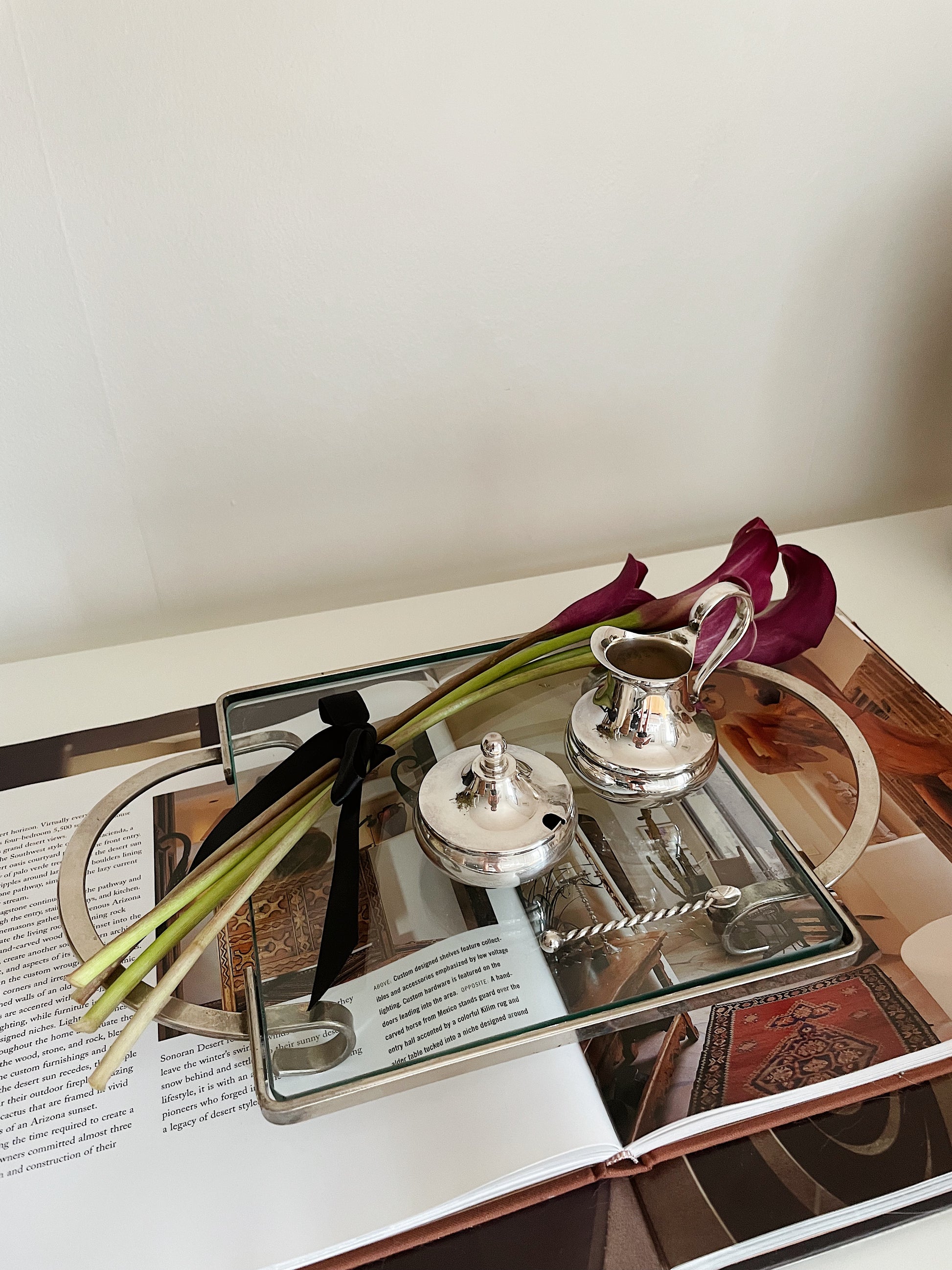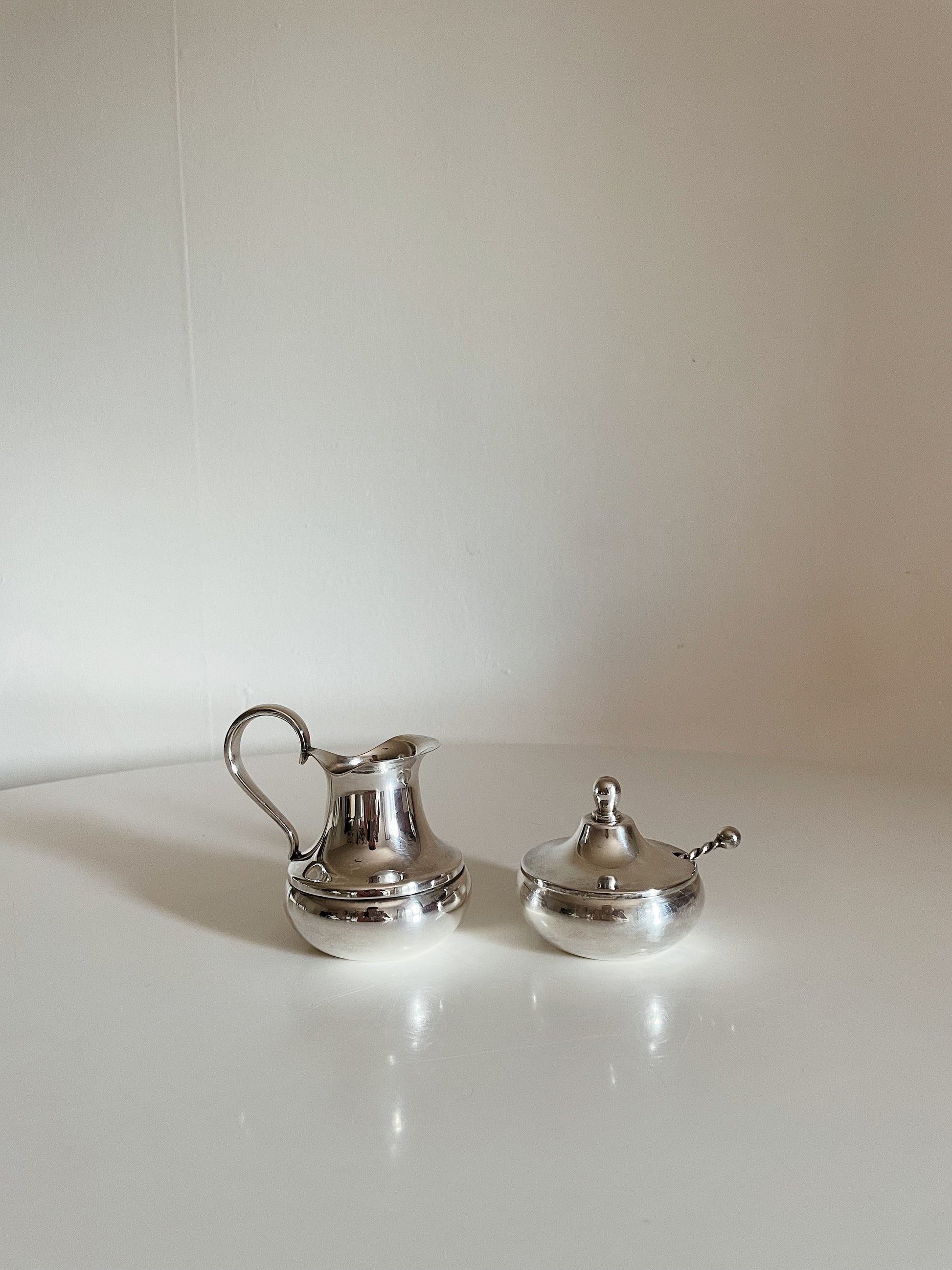 Silver plated cream and sugar set with twisted handled sugar spoon, an elevation to your morning
