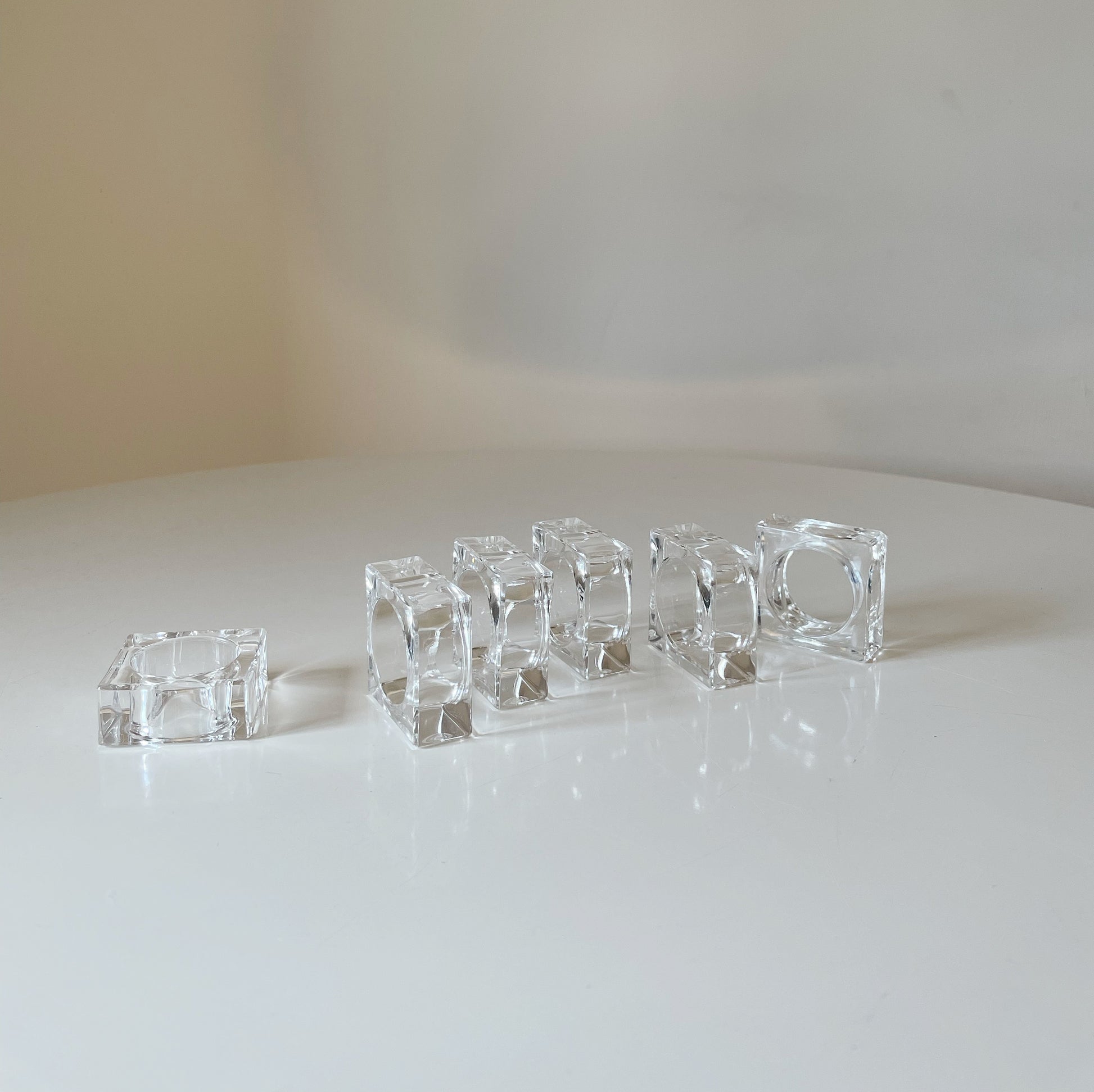 Set of 6 square lucite napkin rings, a simple and modern elevation to any table