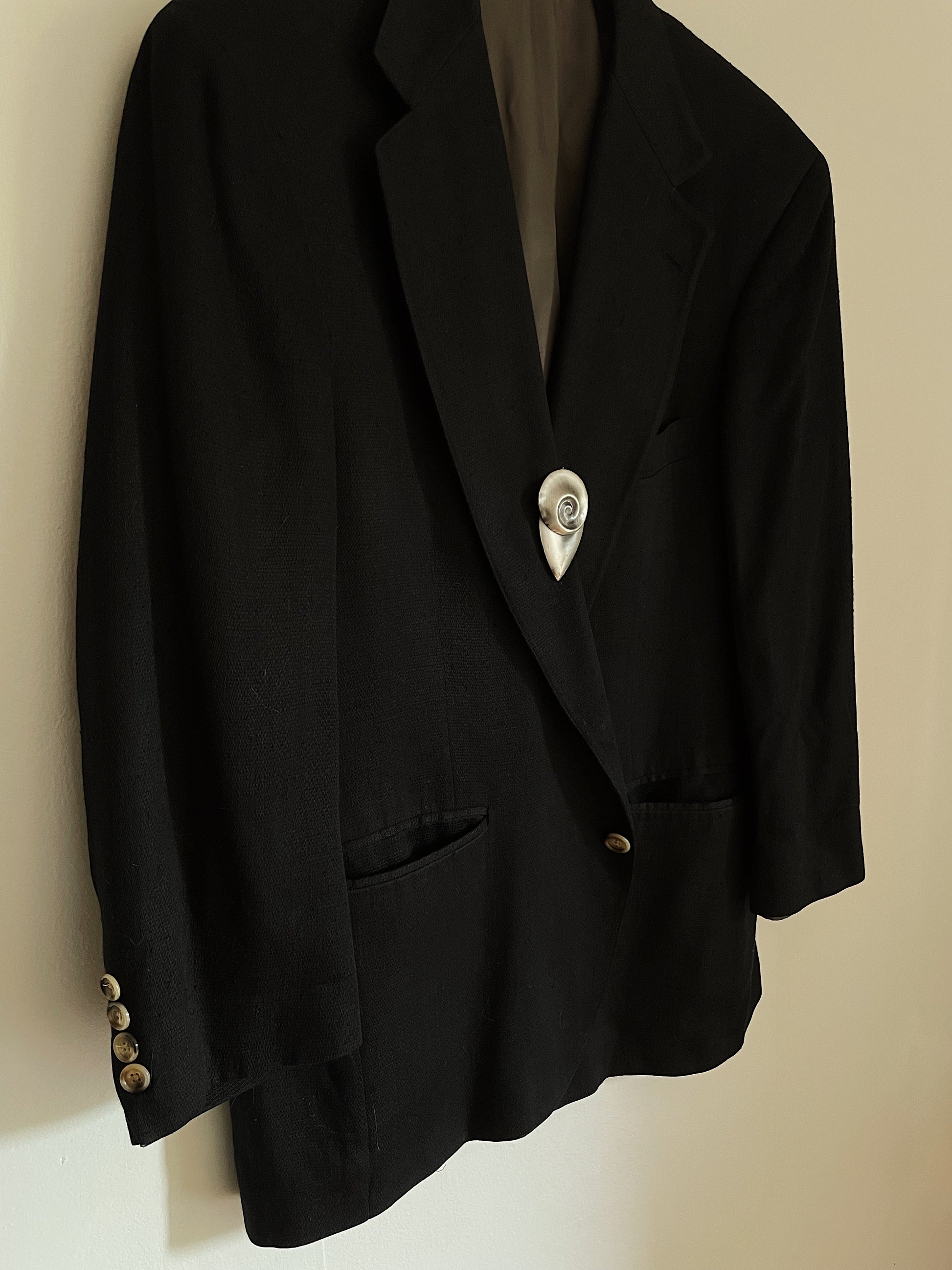Pewter brutalist brooch featuring an abstract shell-like design